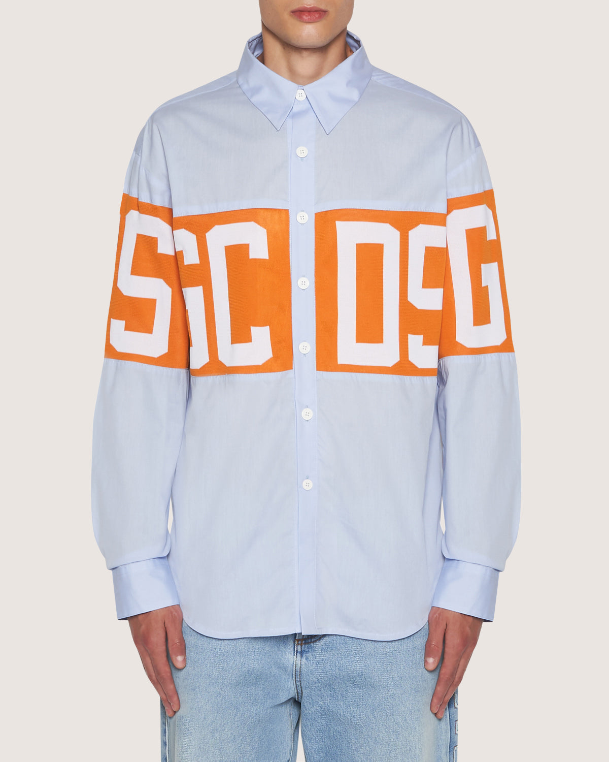Long sleeves cotton shirt with knitted Insert with logo.