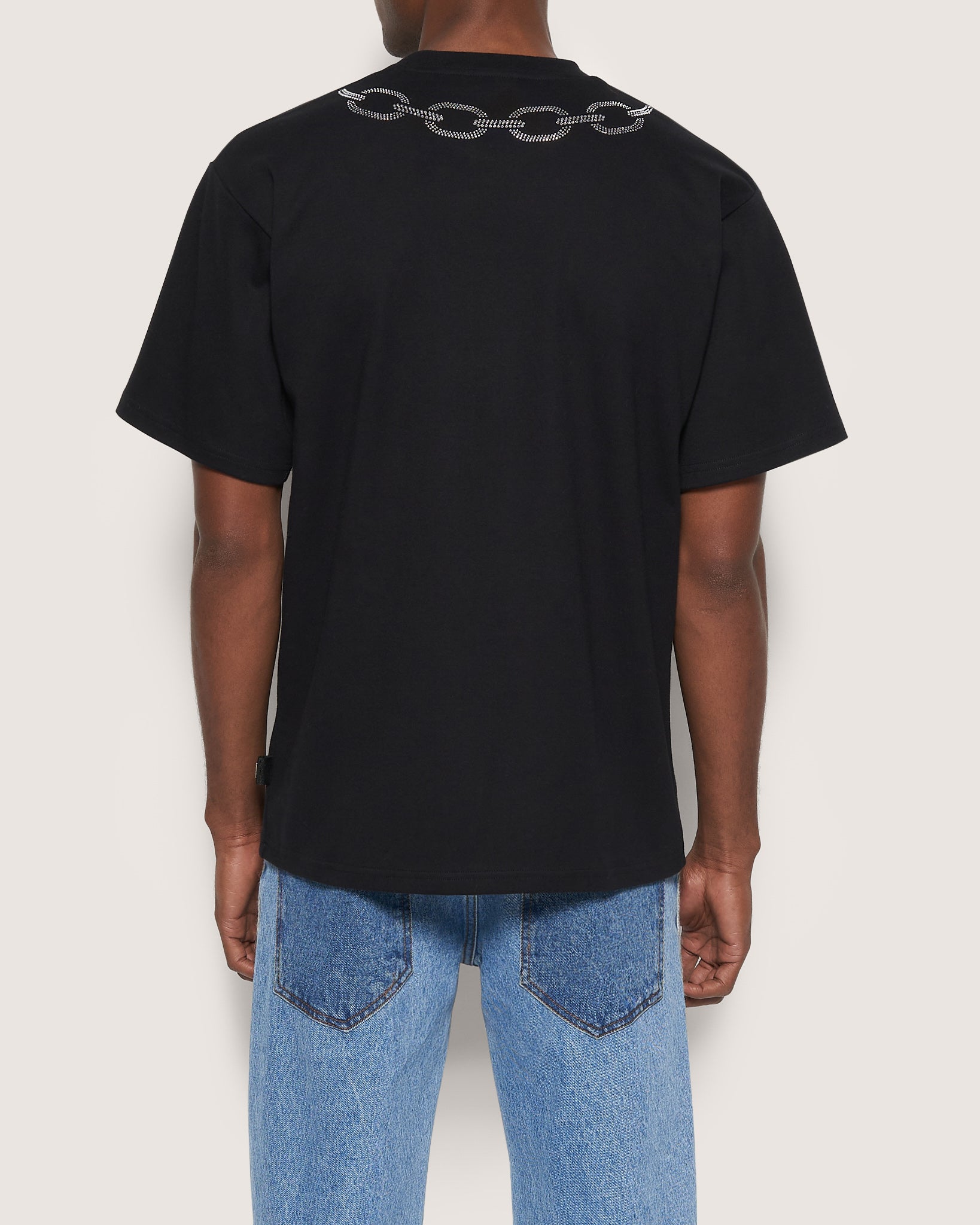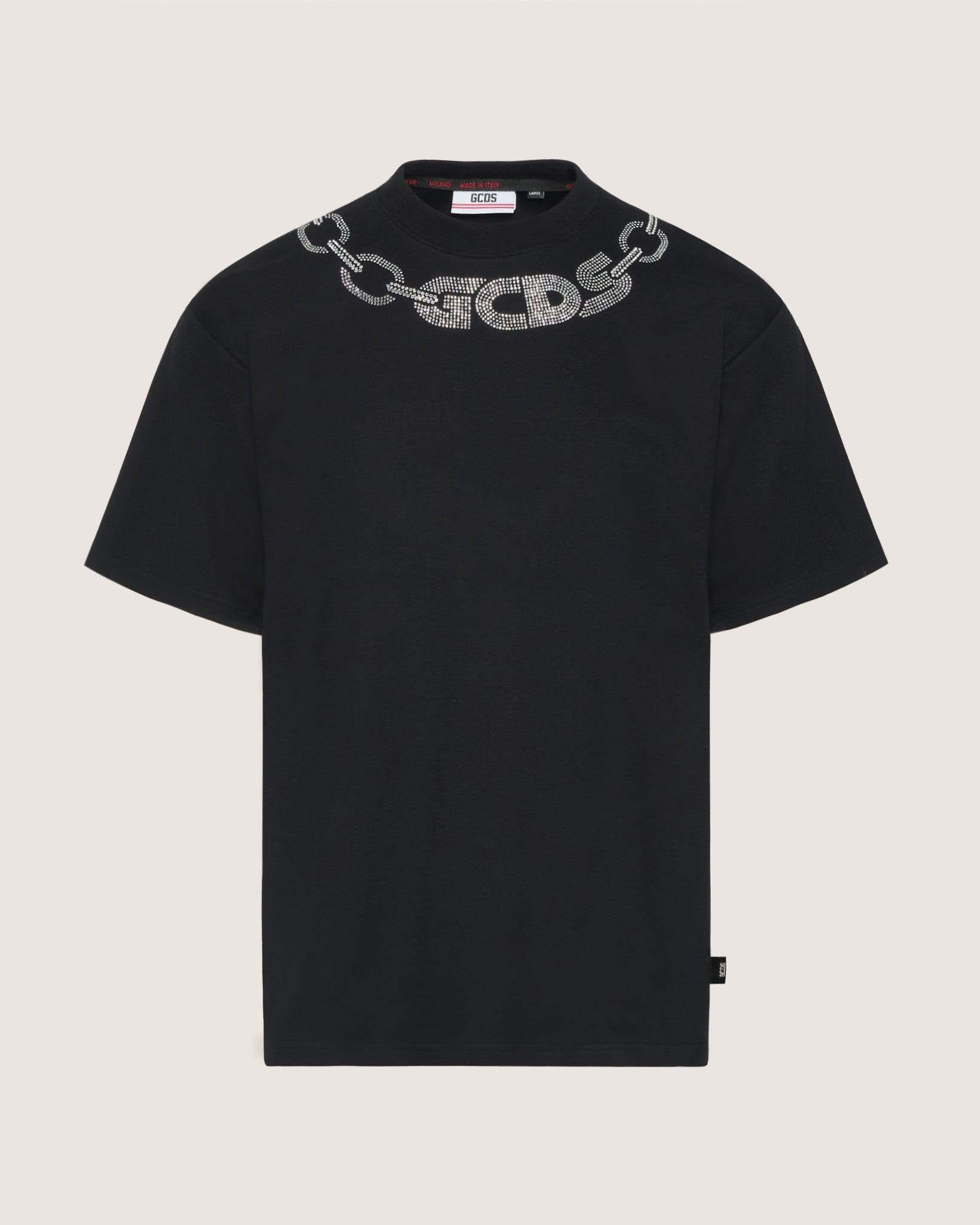 Cotton GCDS T-shirt with Roundy logo around the neckline with applied rhinestones. Classic cut, regular fit.