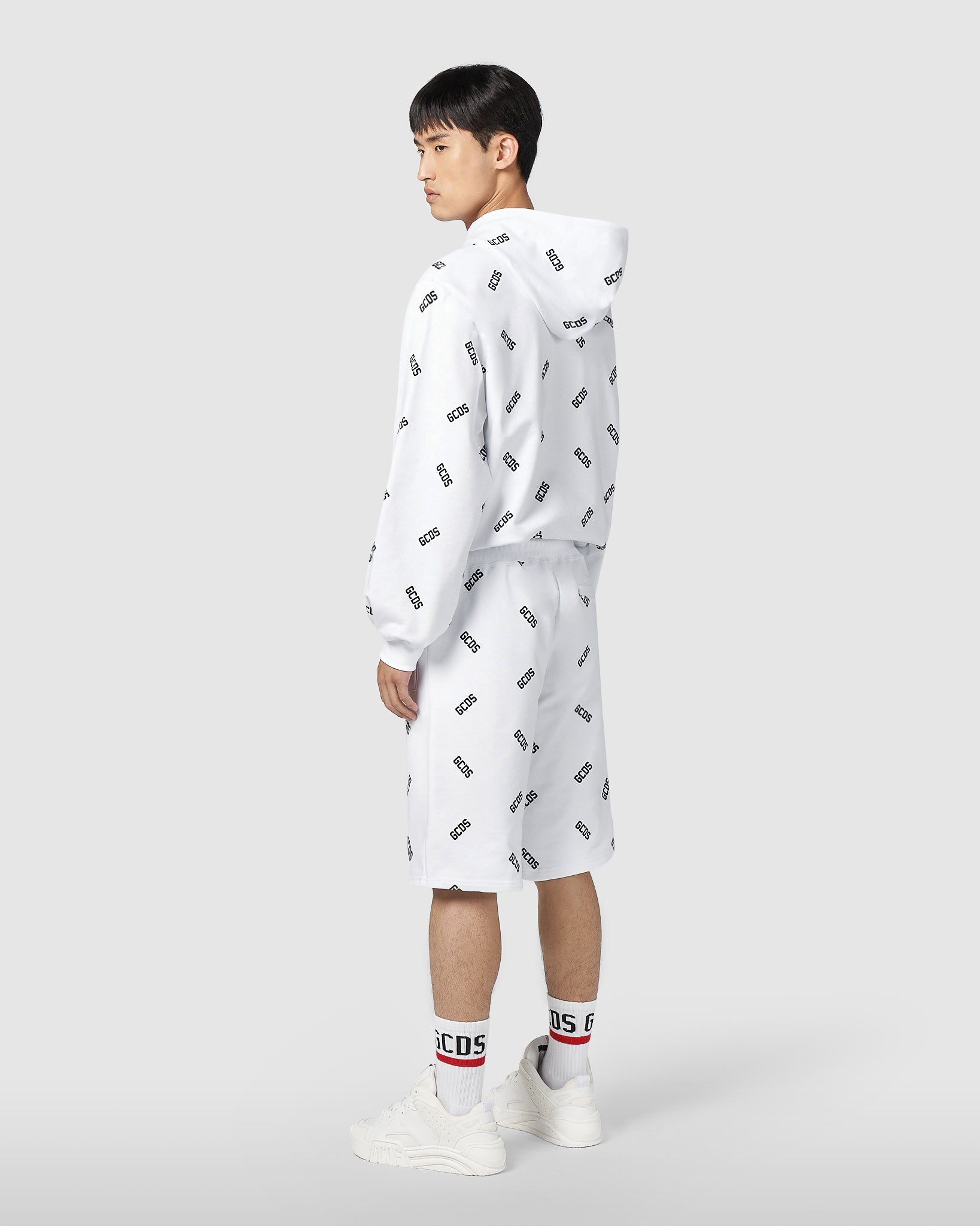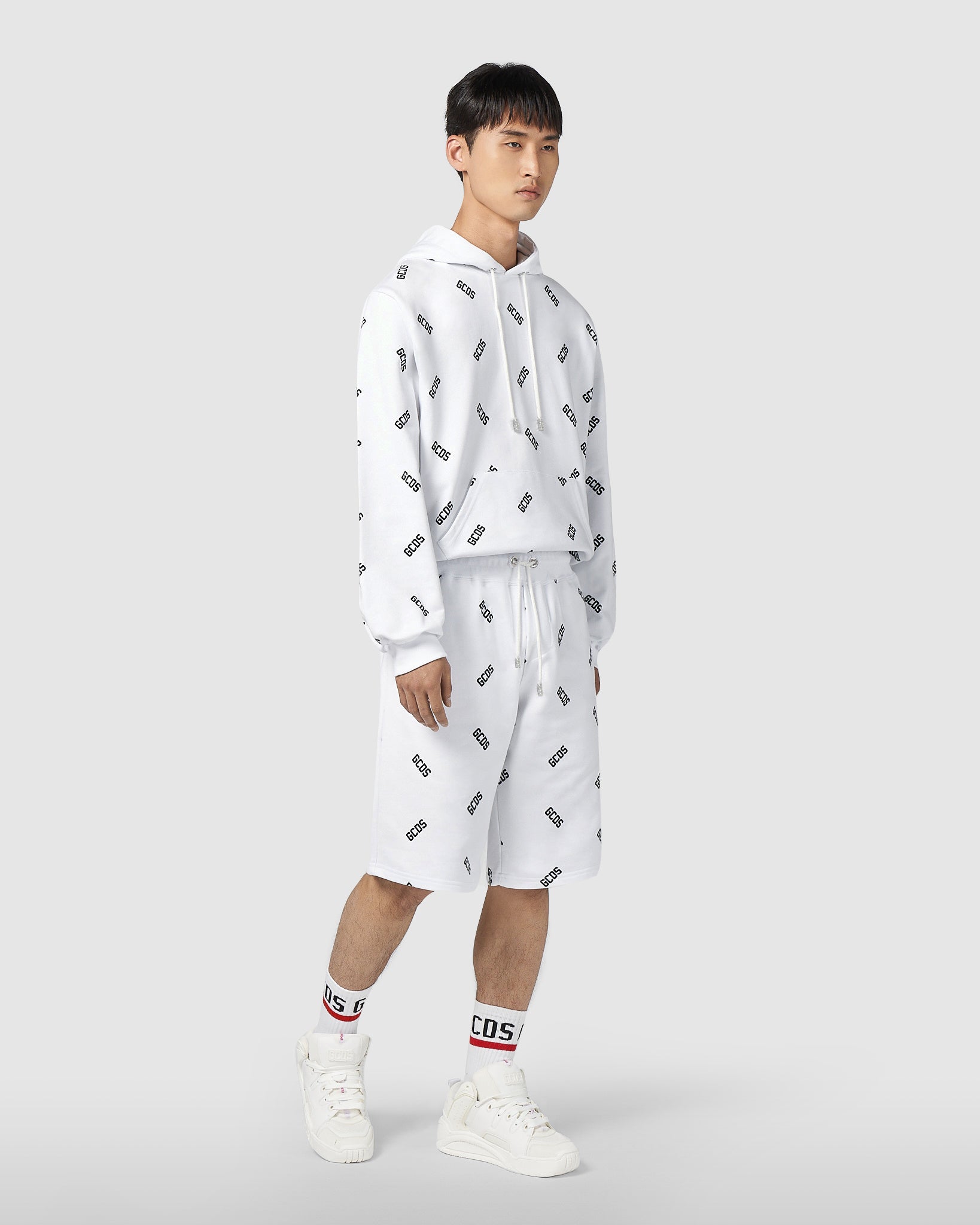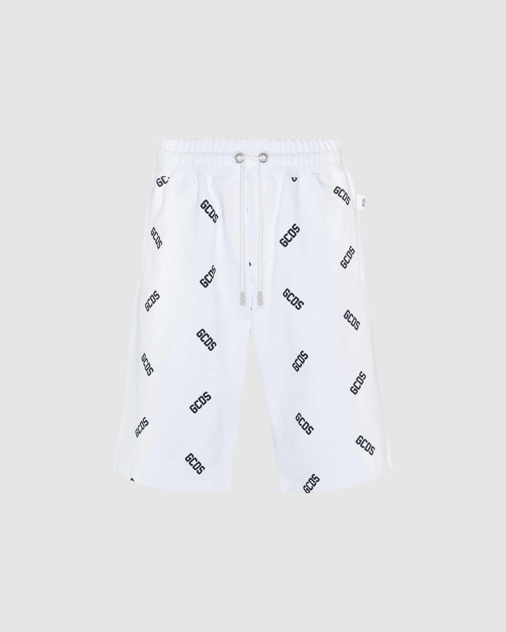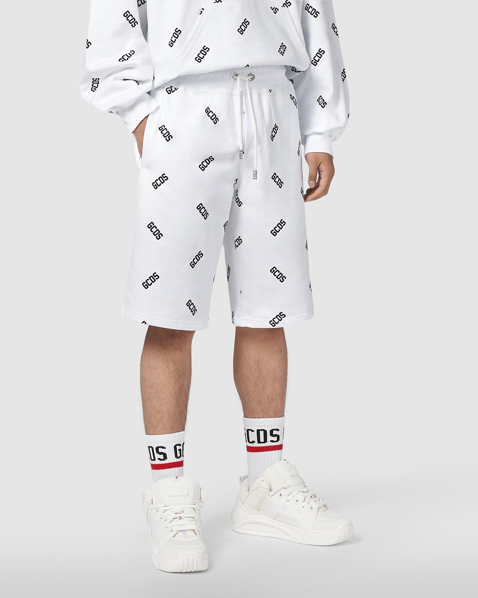 GCDS cotton shorts with all-over logo print. Welt pockets and elastic waistband. Regular fit.
