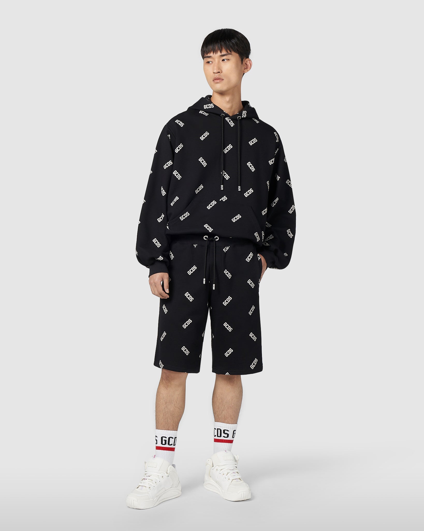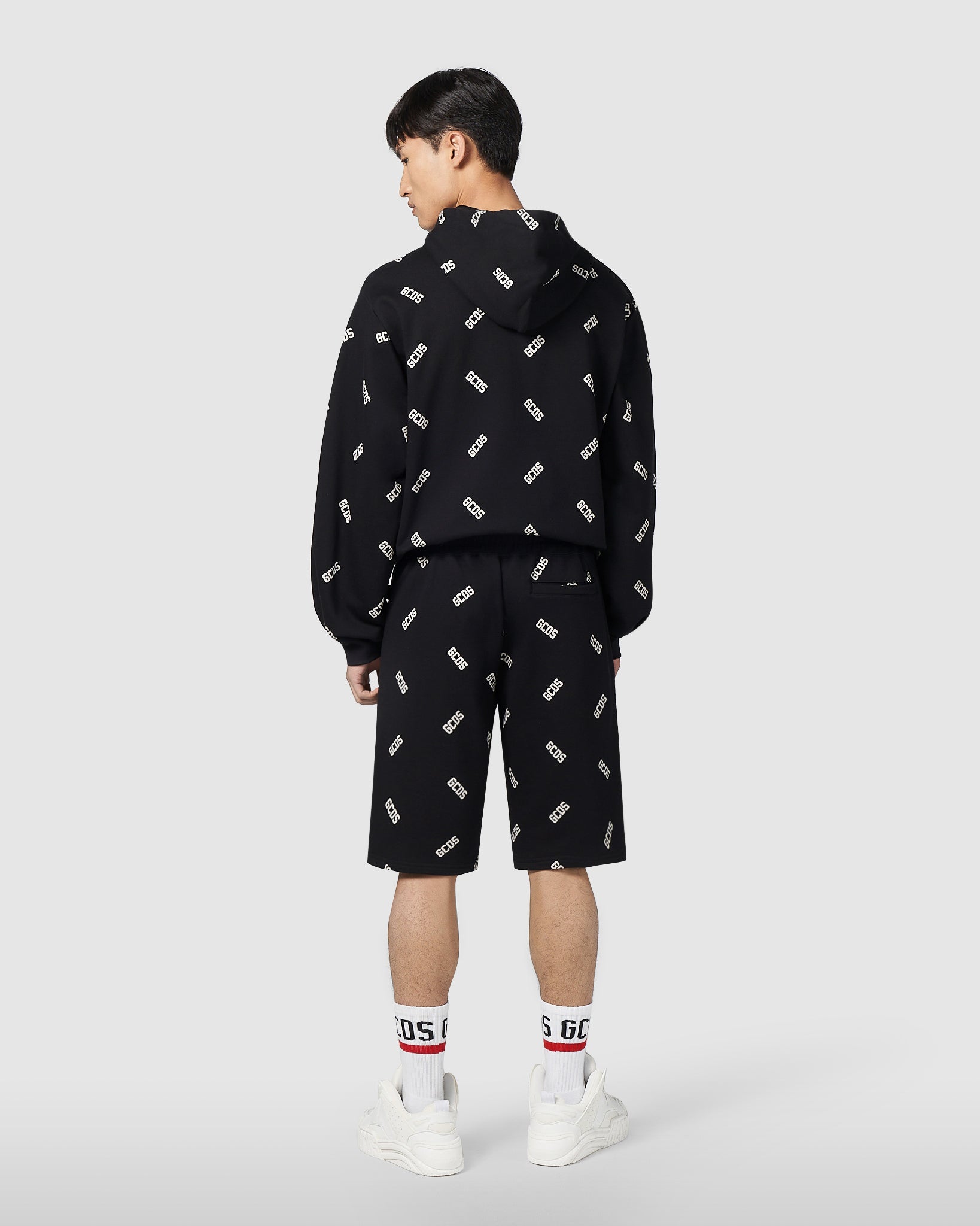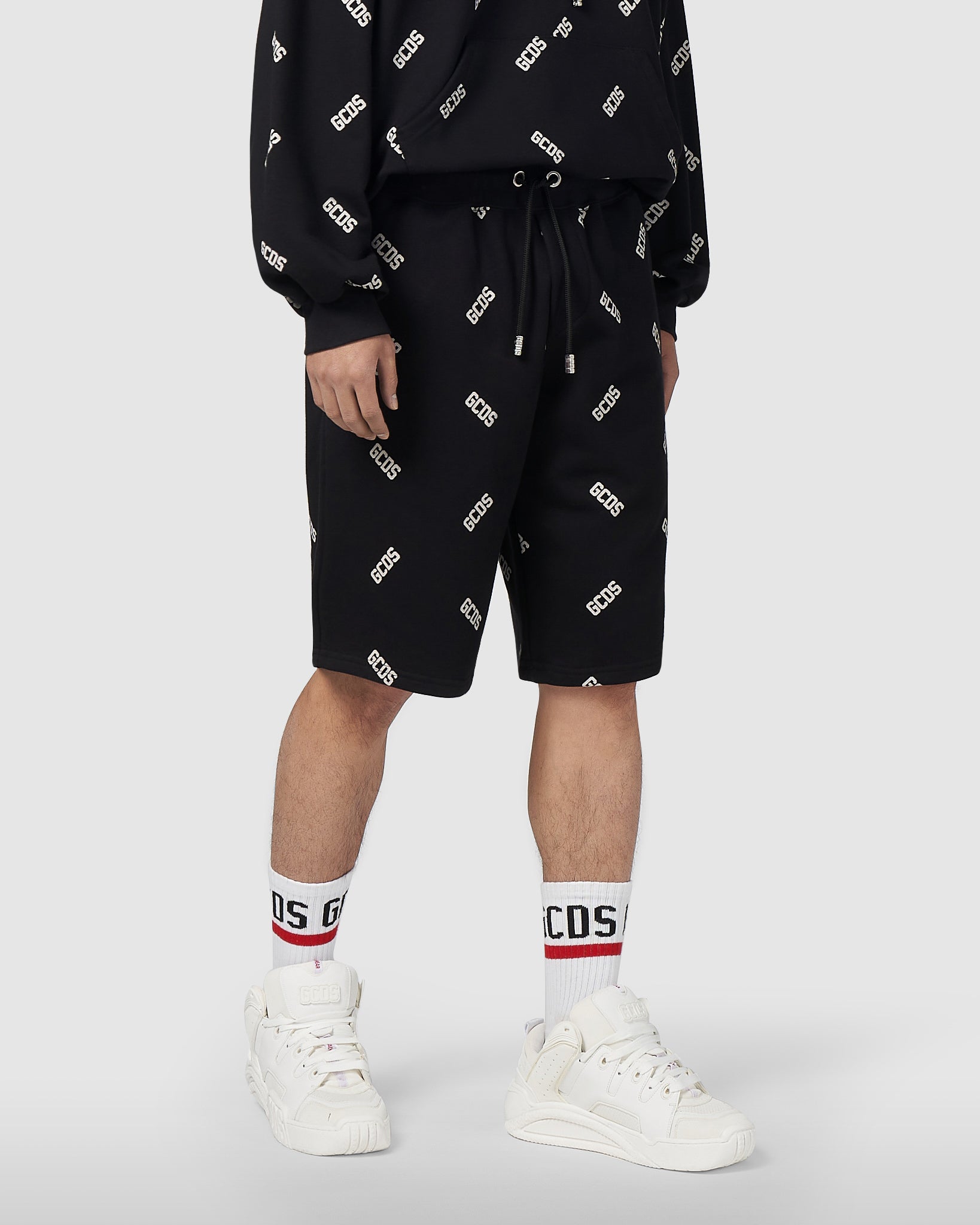GCDS cotton shorts with all-over logo print. Welt pockets and elastic waistband. Regular fit.