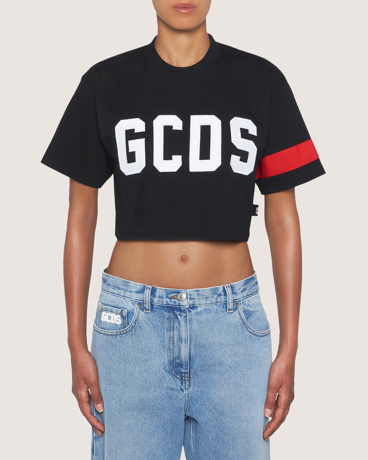 T-shirt fit regular crop with contrasting GCDS logo embroidered on front center.