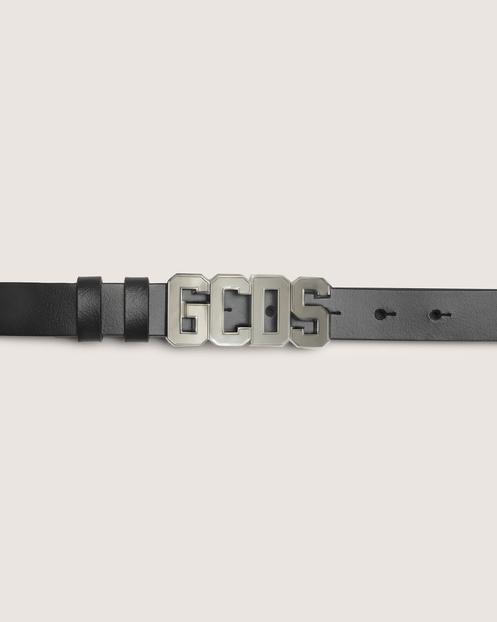 Leather GCDS belt with loops. Closure set with nickel GCDS logo buckle.