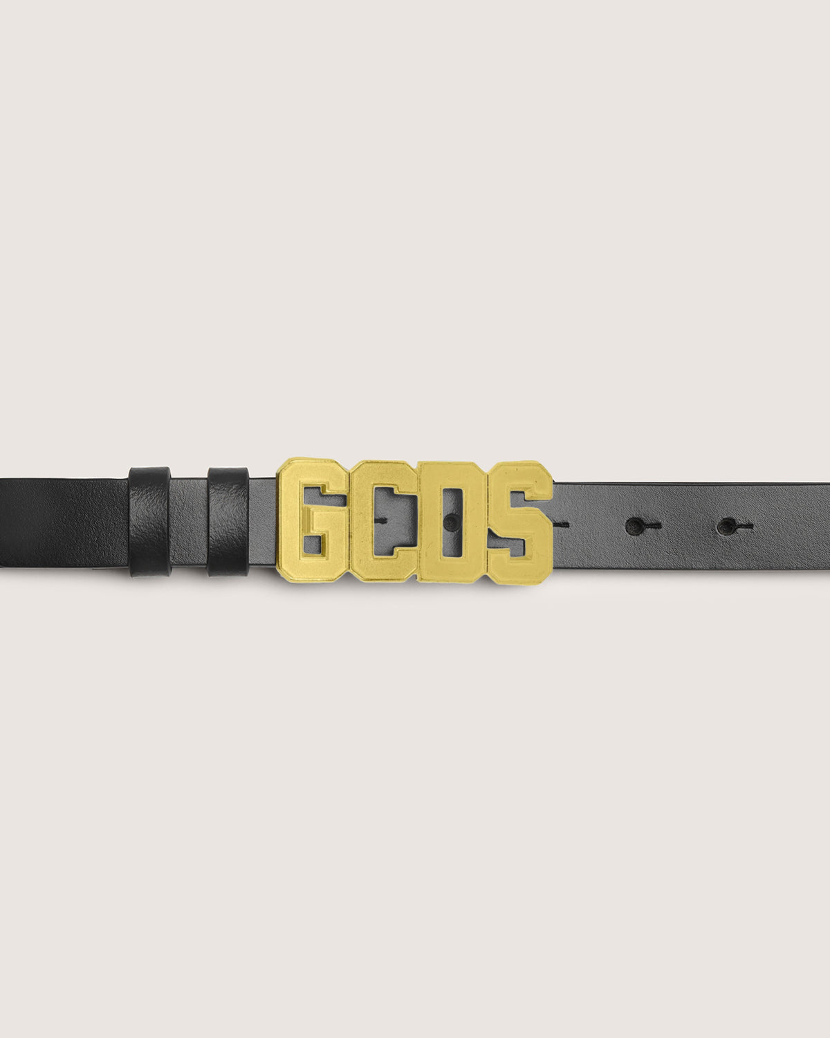 Leather GCDS belt with loops. Closure set with nickel GCDS logo buckle.
