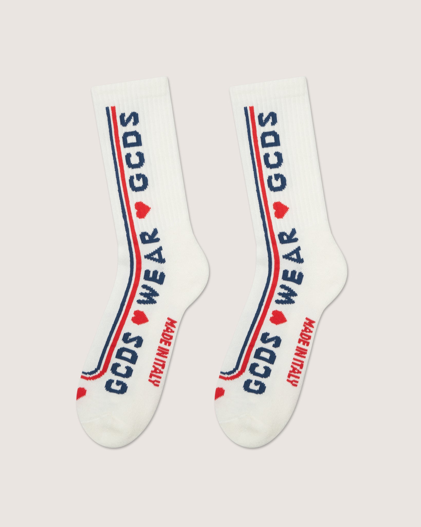 Cotton blend GCDS socks with Cute logo band along the entire length. Fit: one size, suitable for 35/45.