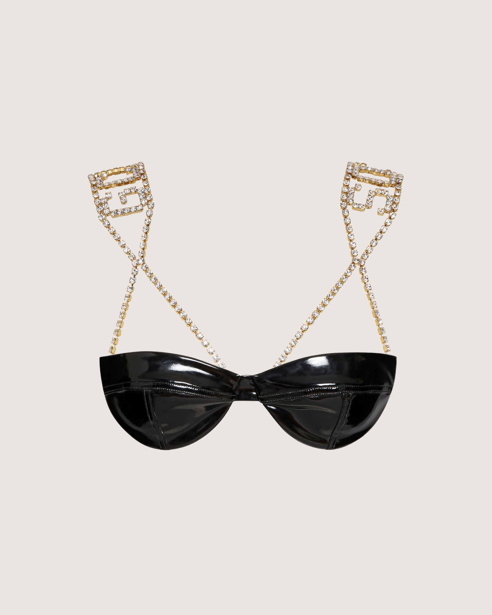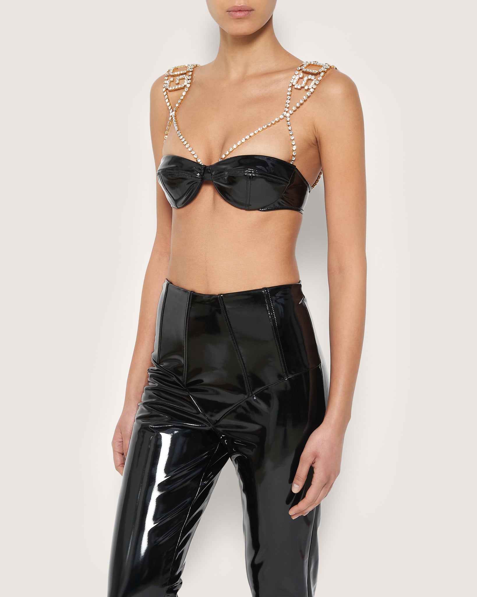 Vinyl balconette GCDS bra. Jewel straps with logo in Preciosa crystals.