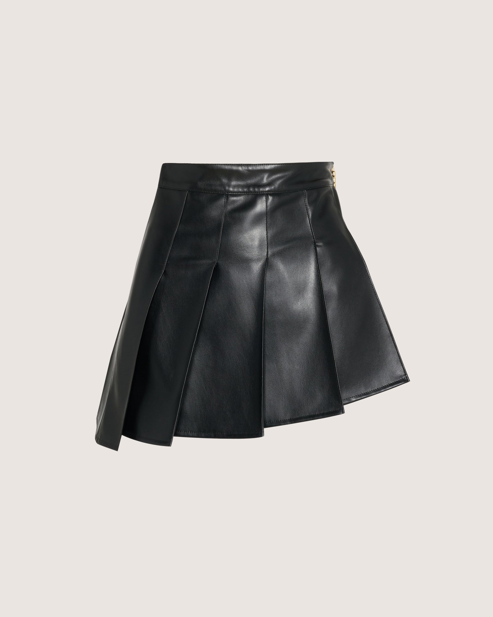 Super mini GCDS skirt in pleated faux leather with asymmetrical cut. Visible zipper on the side.