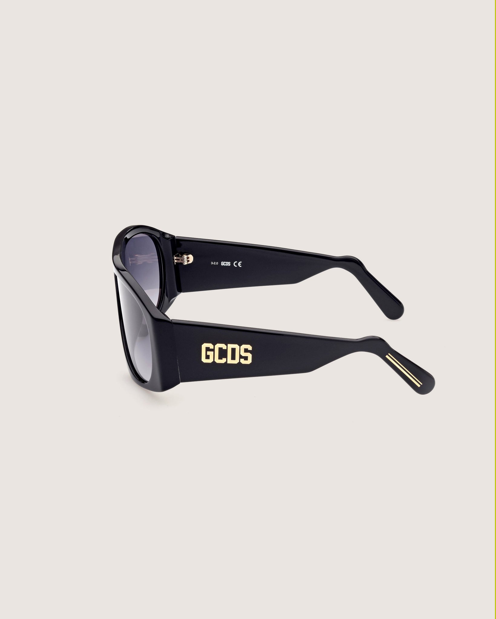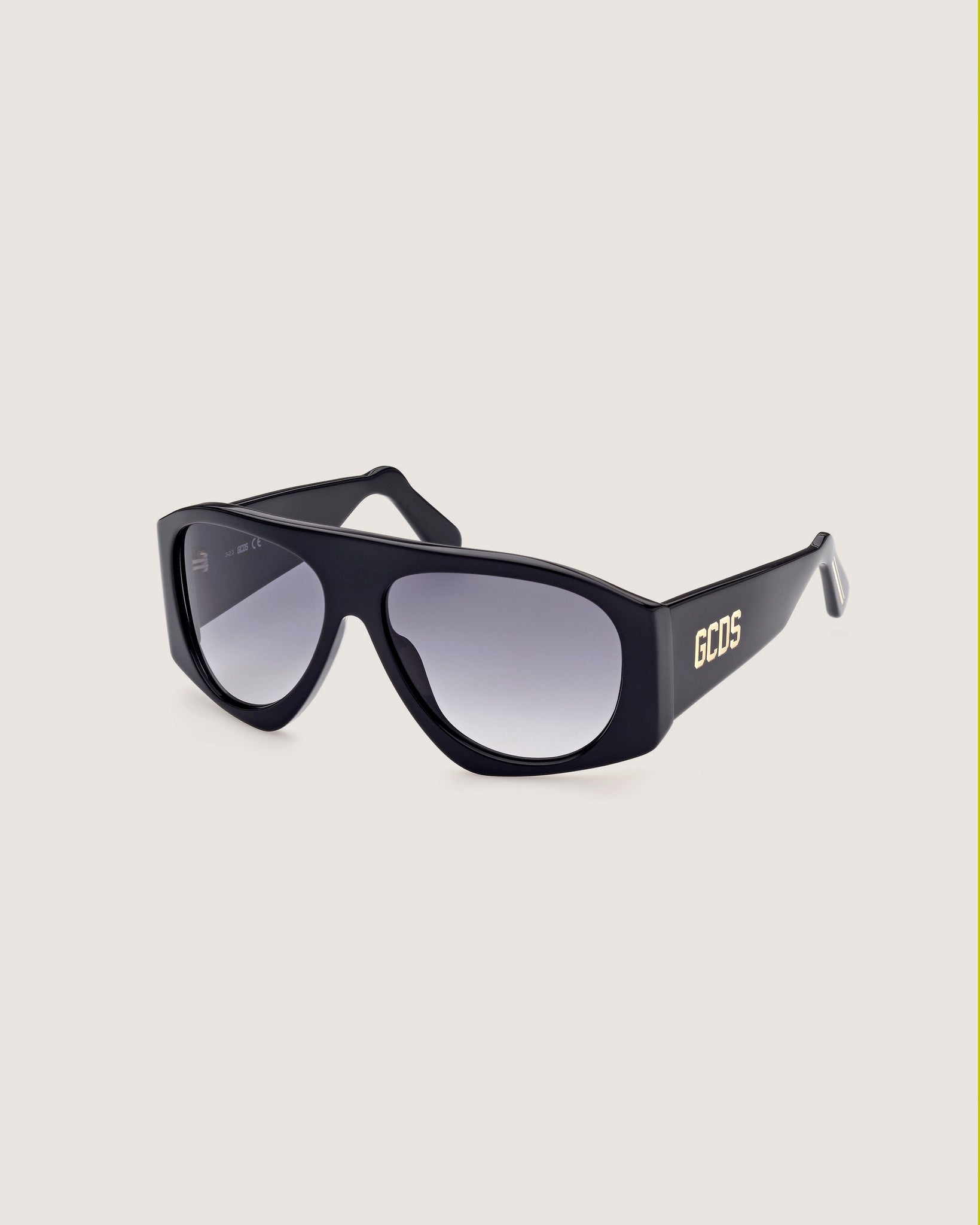 A distinctive and modern geometric design for these large acetate sunglasses with bold attitude. The temples are embellished with the GCDS maxi logo.