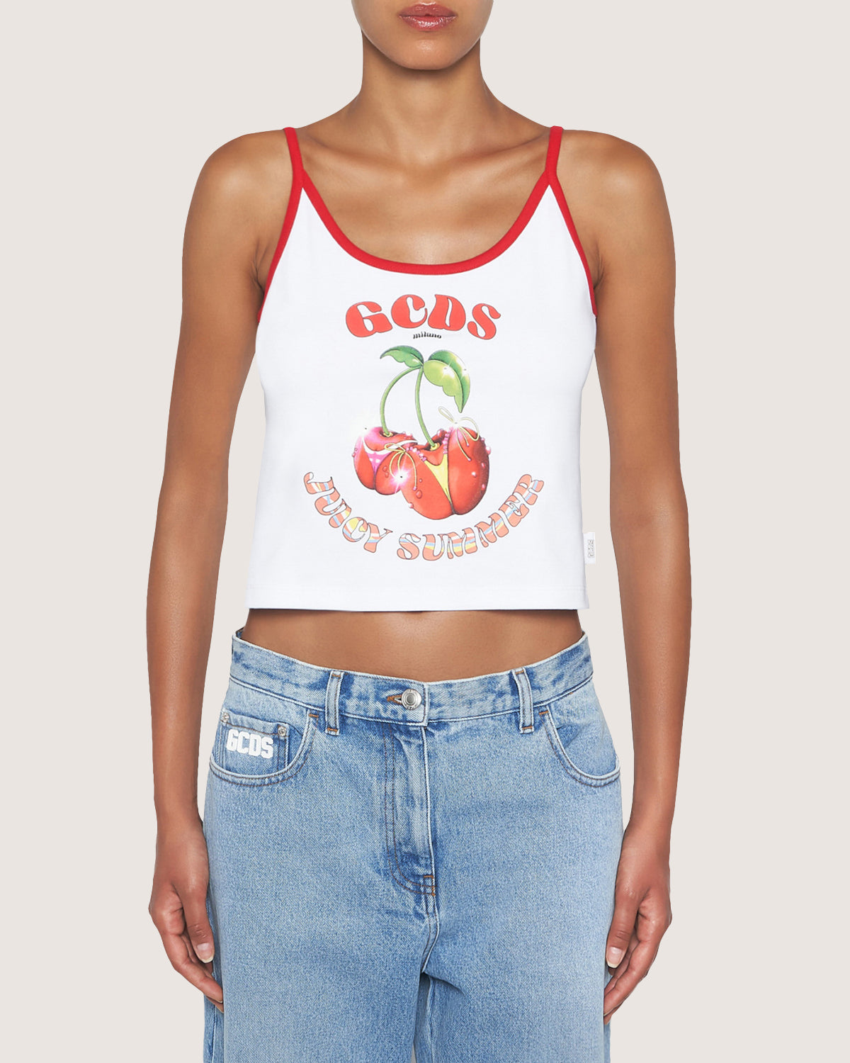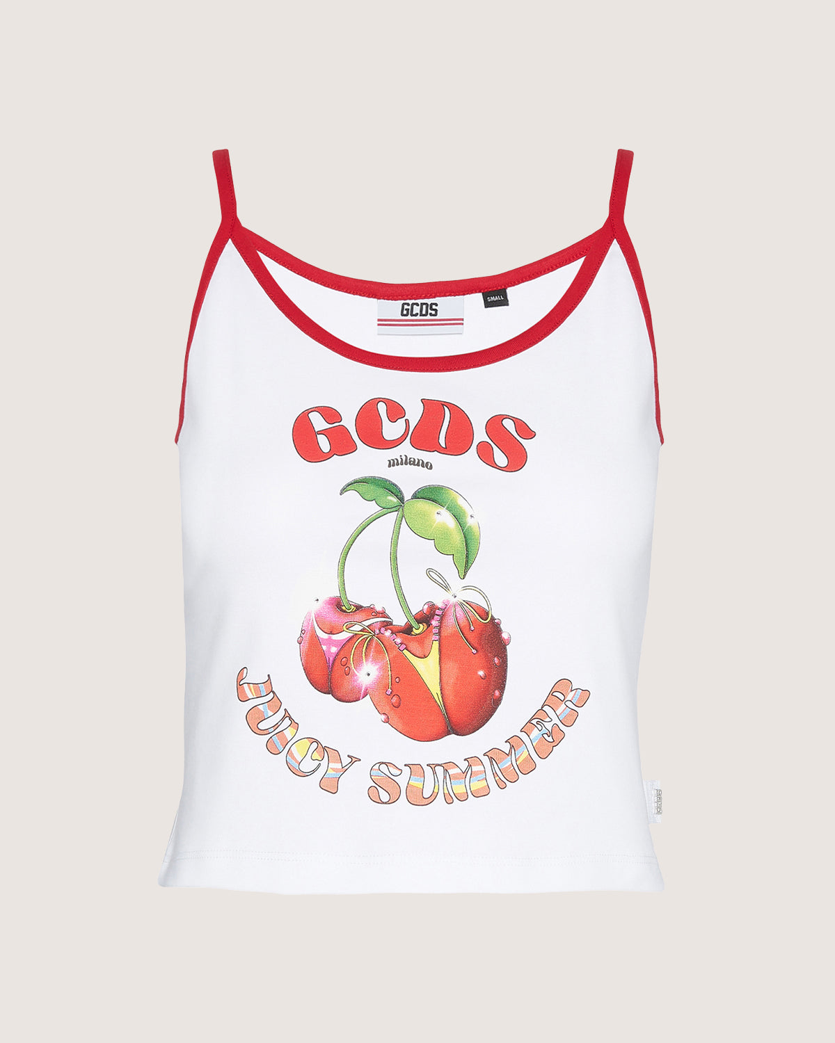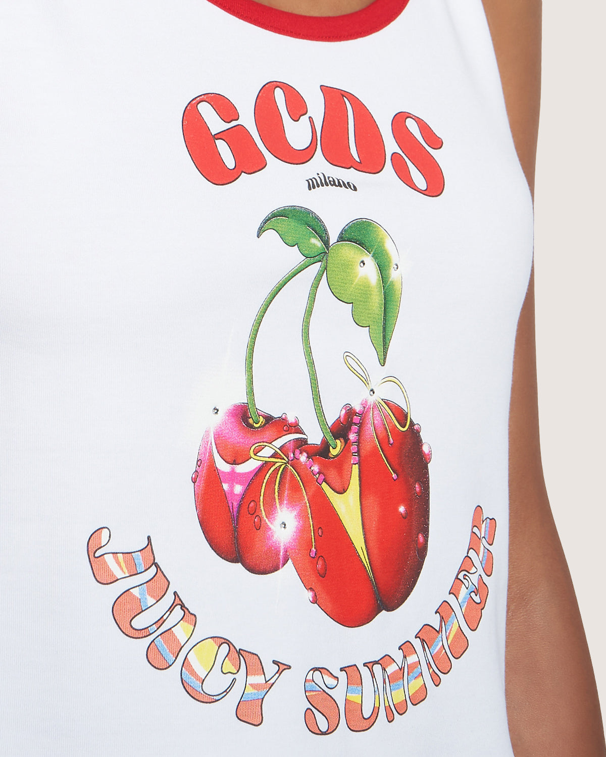 Cotton top with graphic print on the front and contrasting shoulder straps.