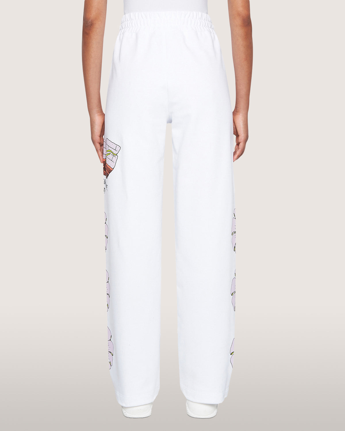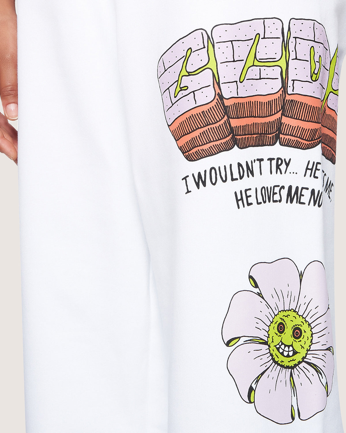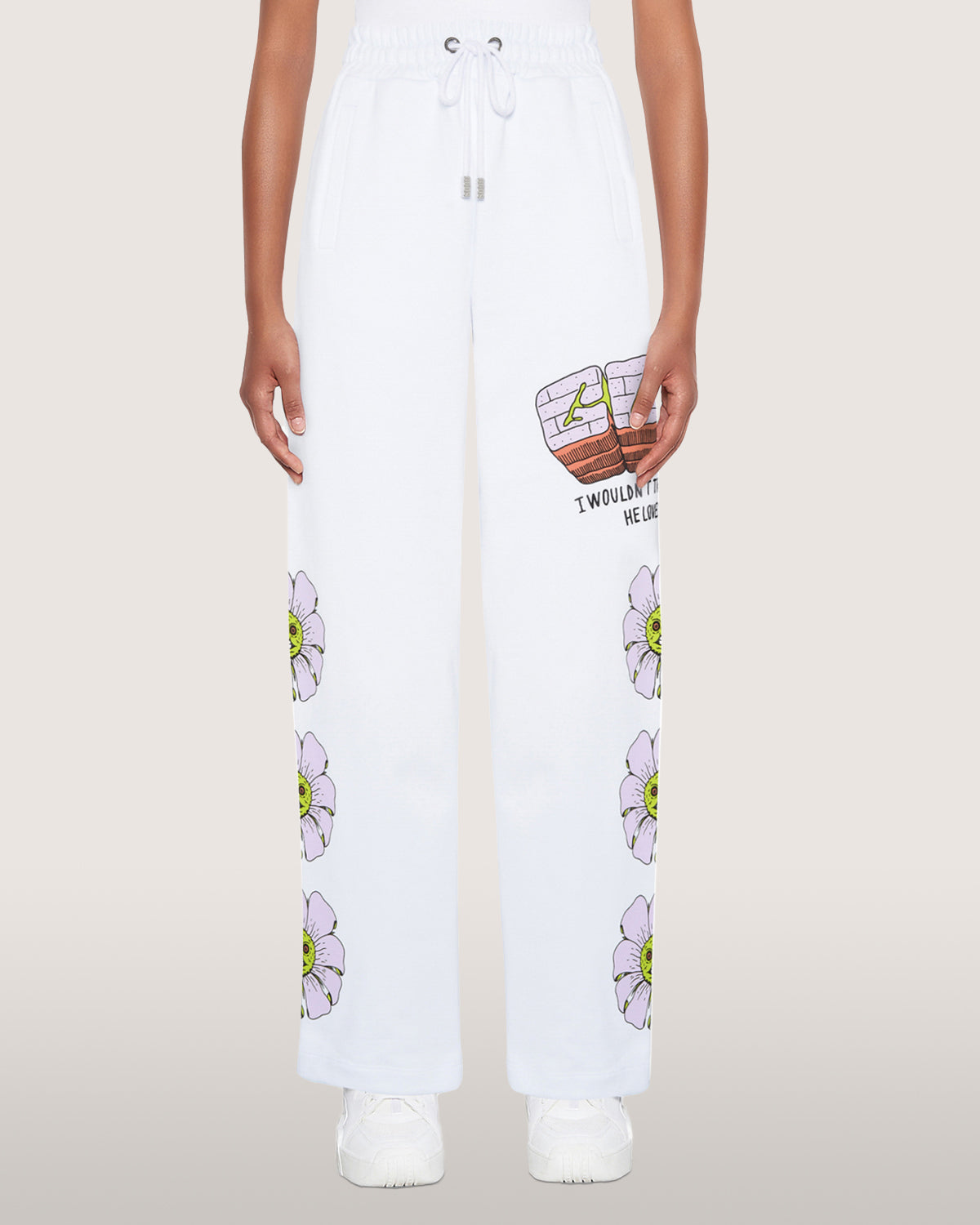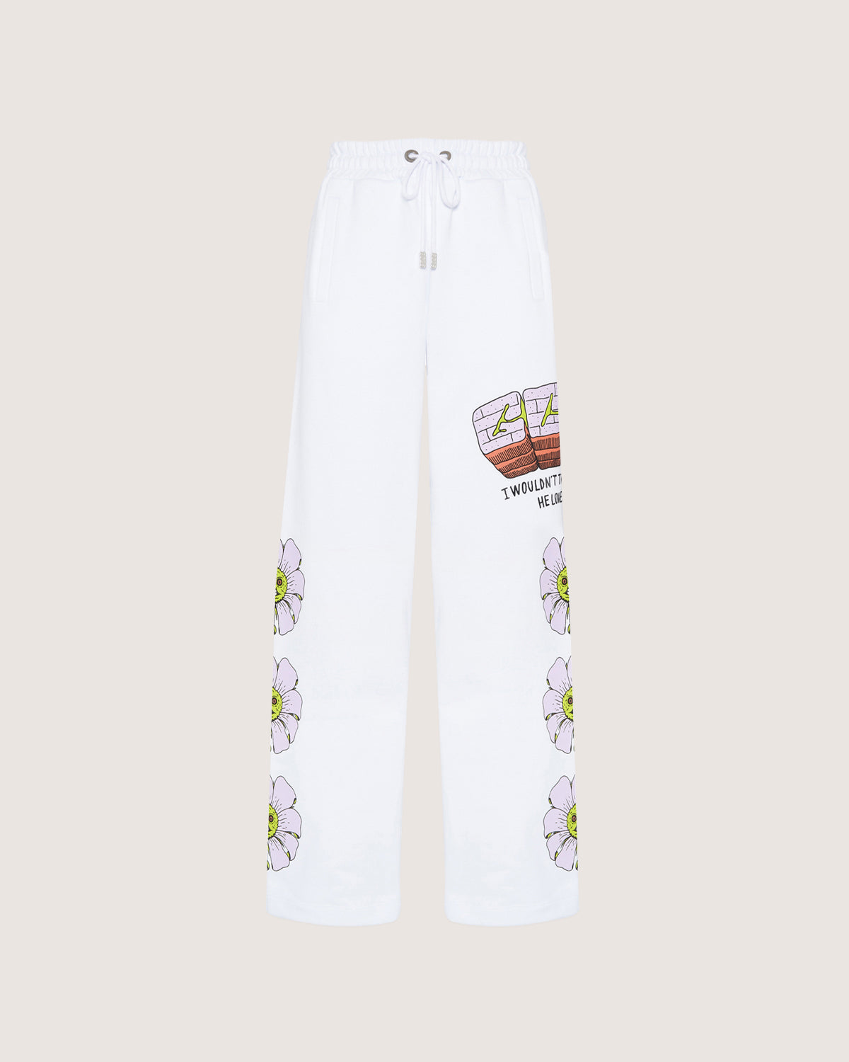 Sustainable cotton sweatpants with Bad Flower print placed along the legs.