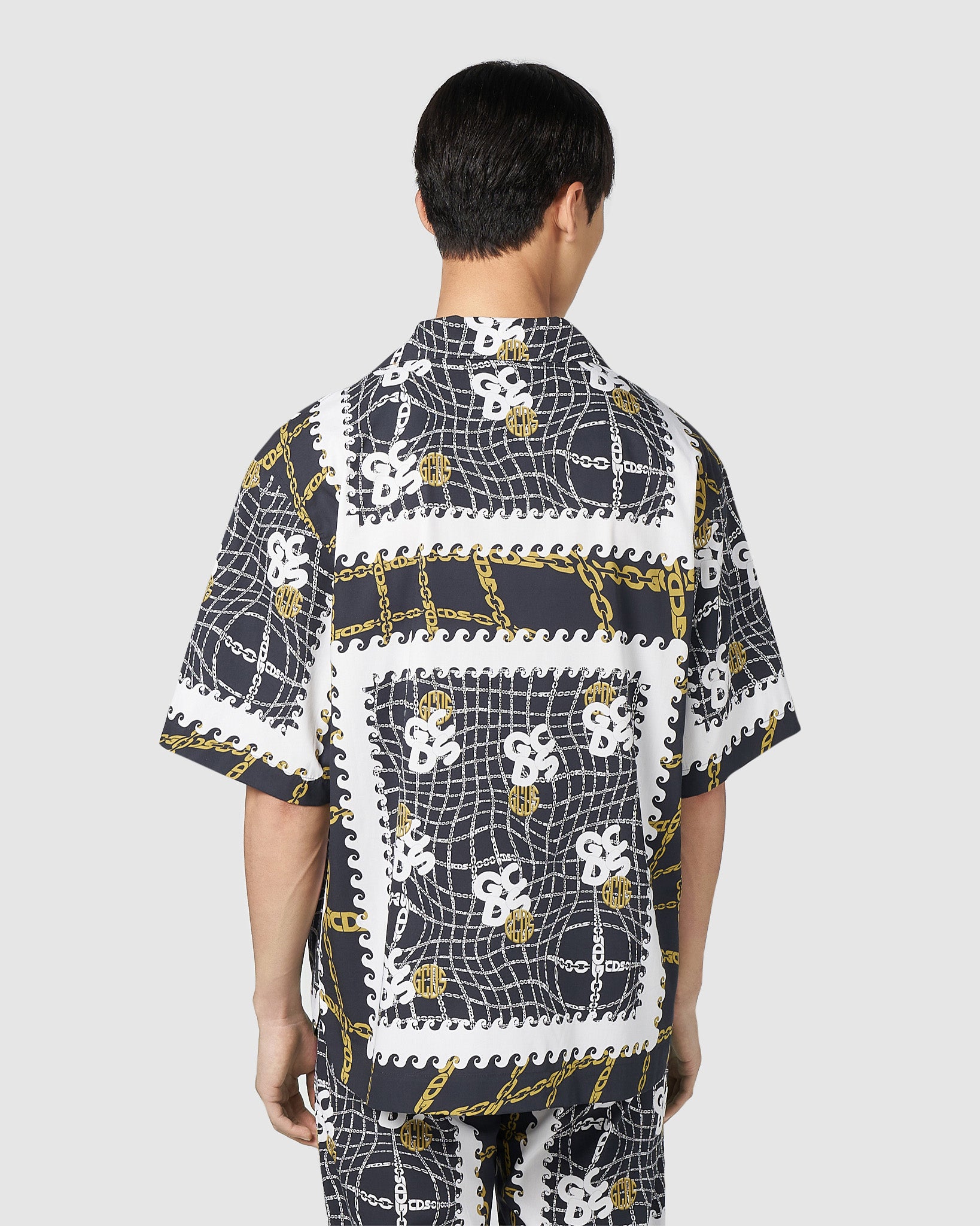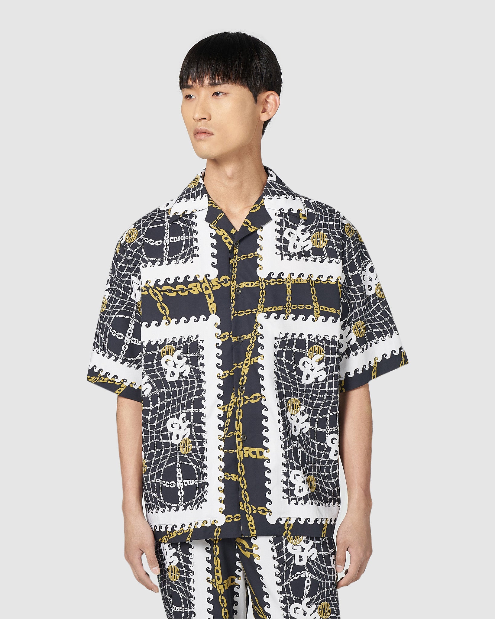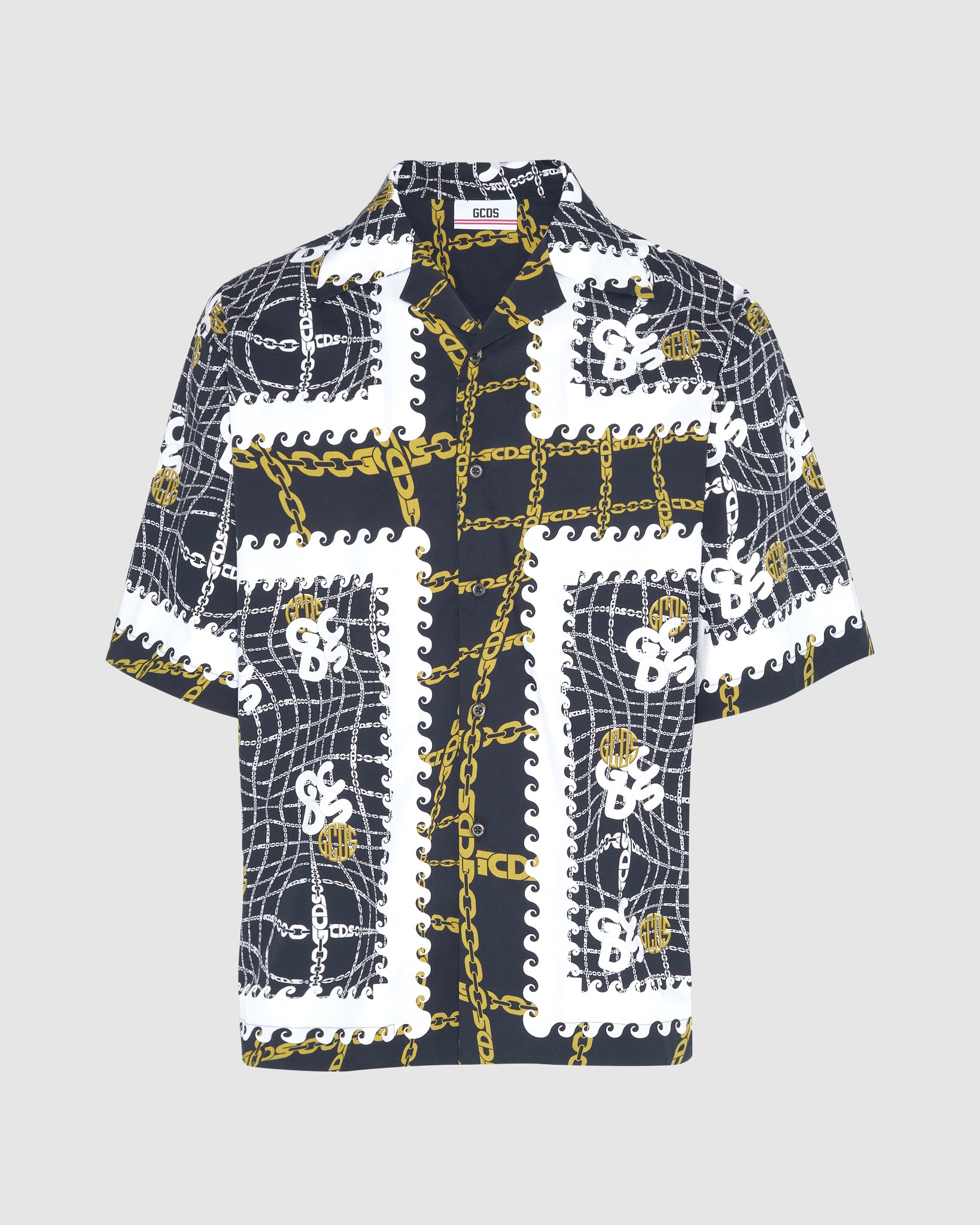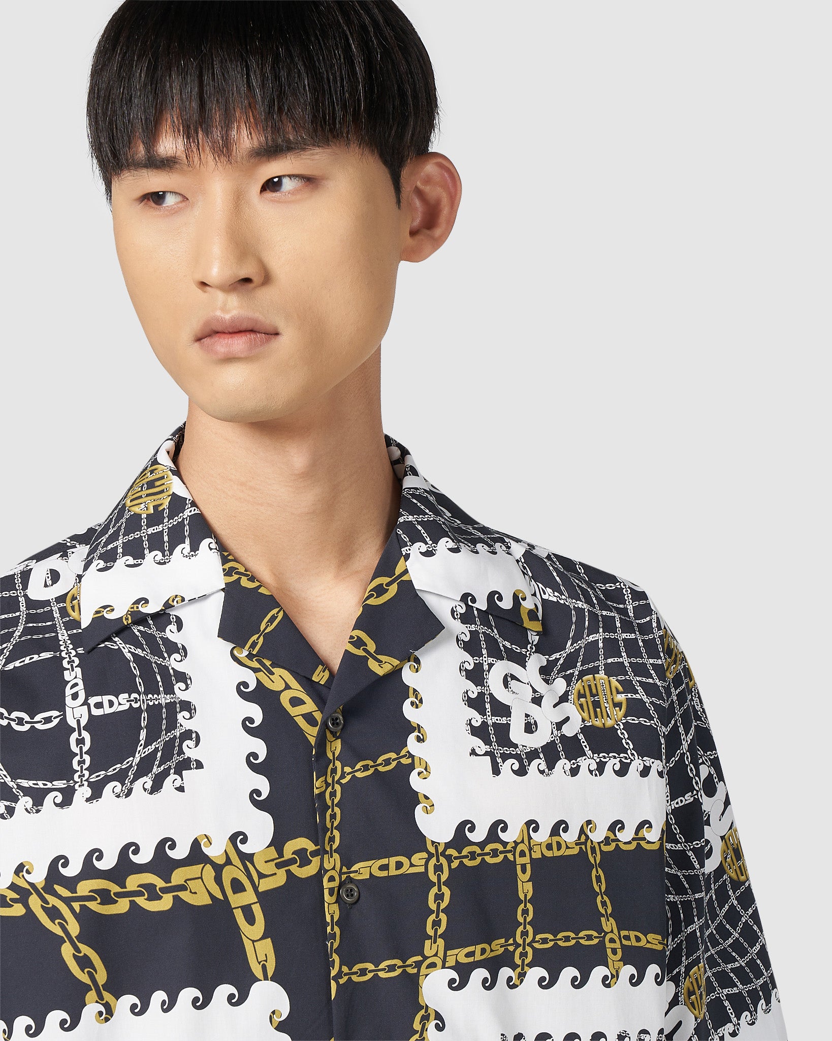 Short-sleeved, cotton GCDS shirt. All-over blurred chain digital artwork. Rounded bottom. Loose fit.