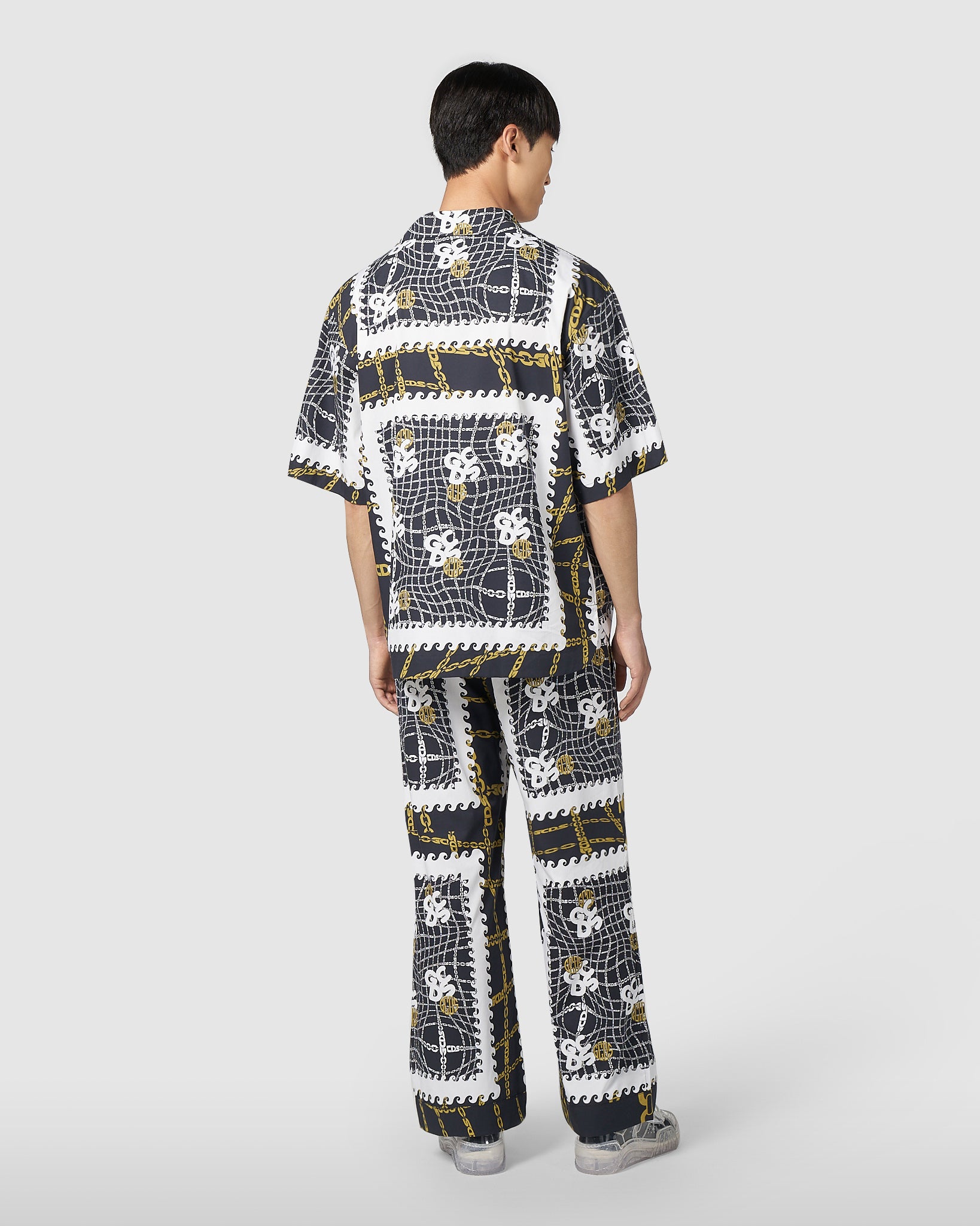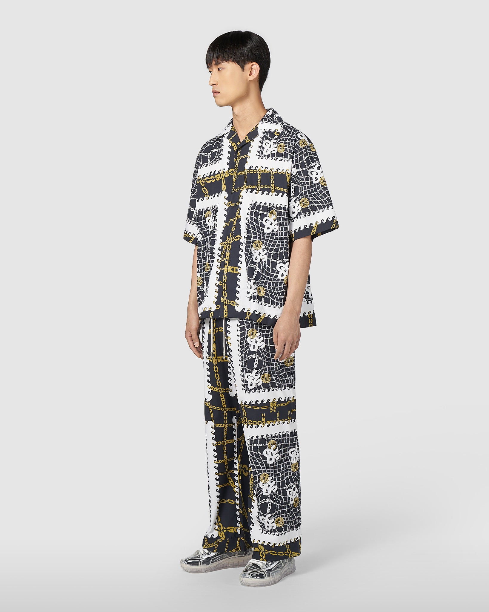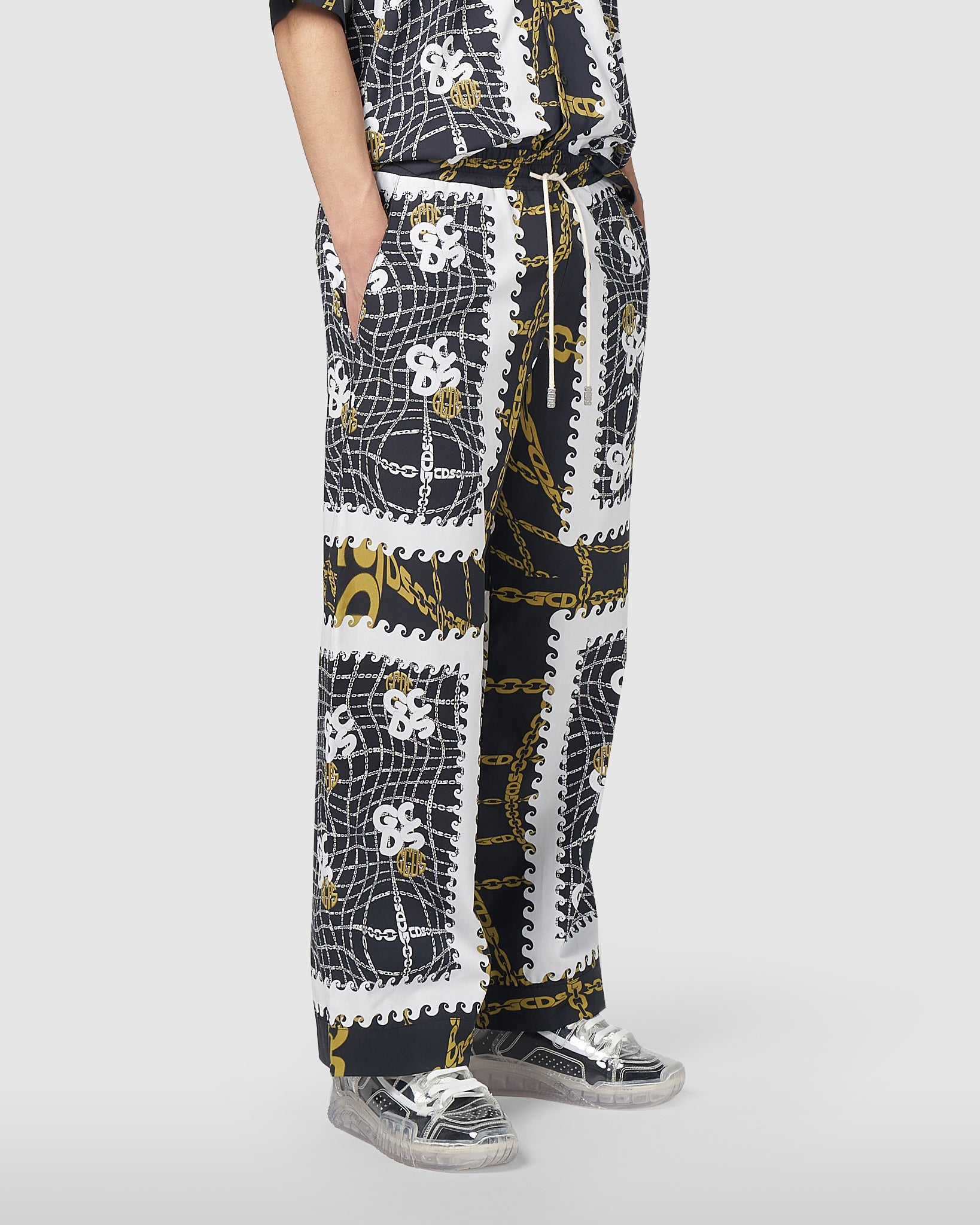 Cotton GCDS pants with all-over blurred chain digital artwork. Elastic waistband with cord tie and logo cord aglet. Relaxed fit.