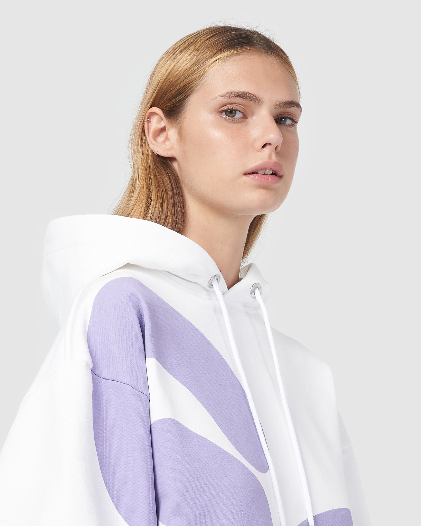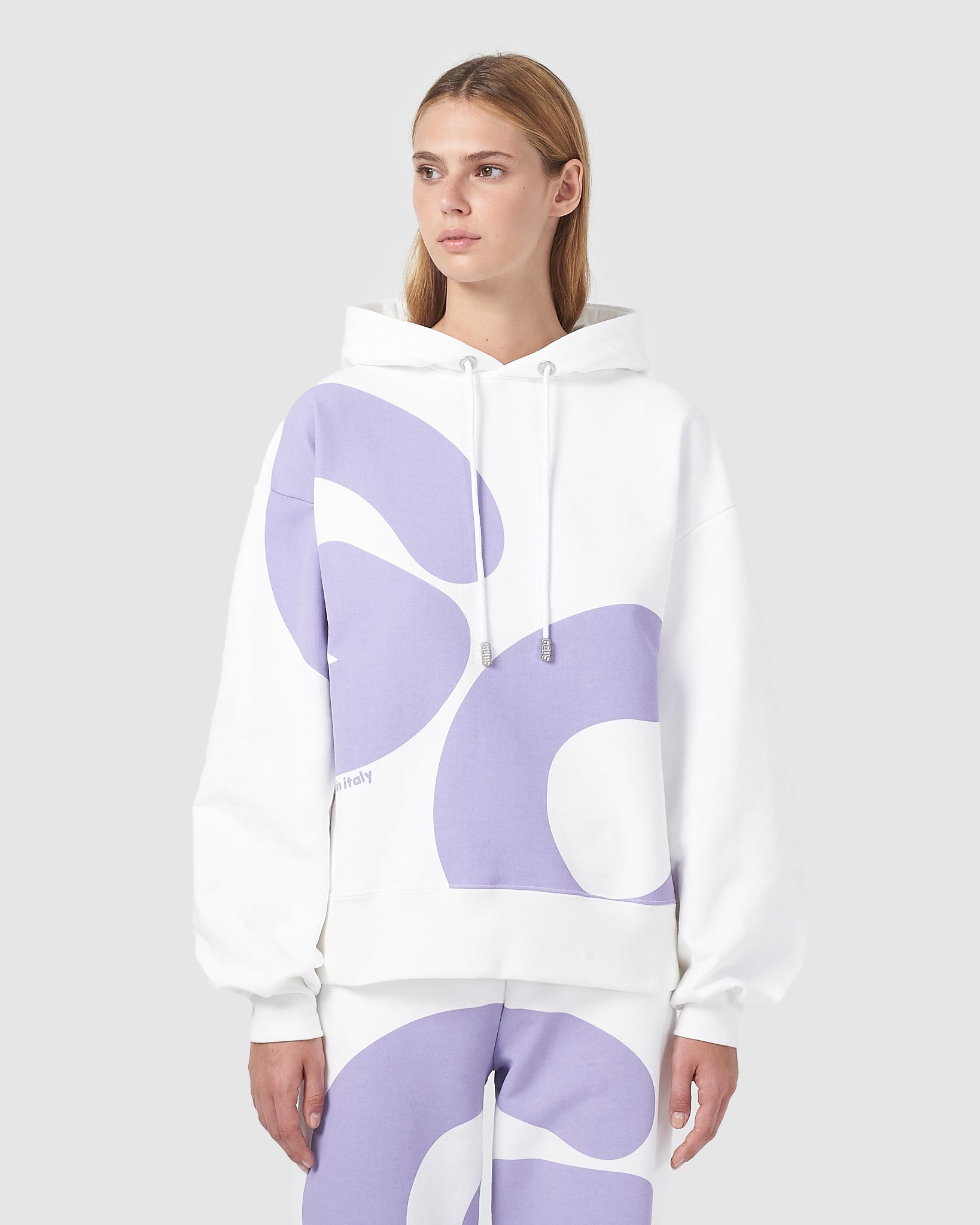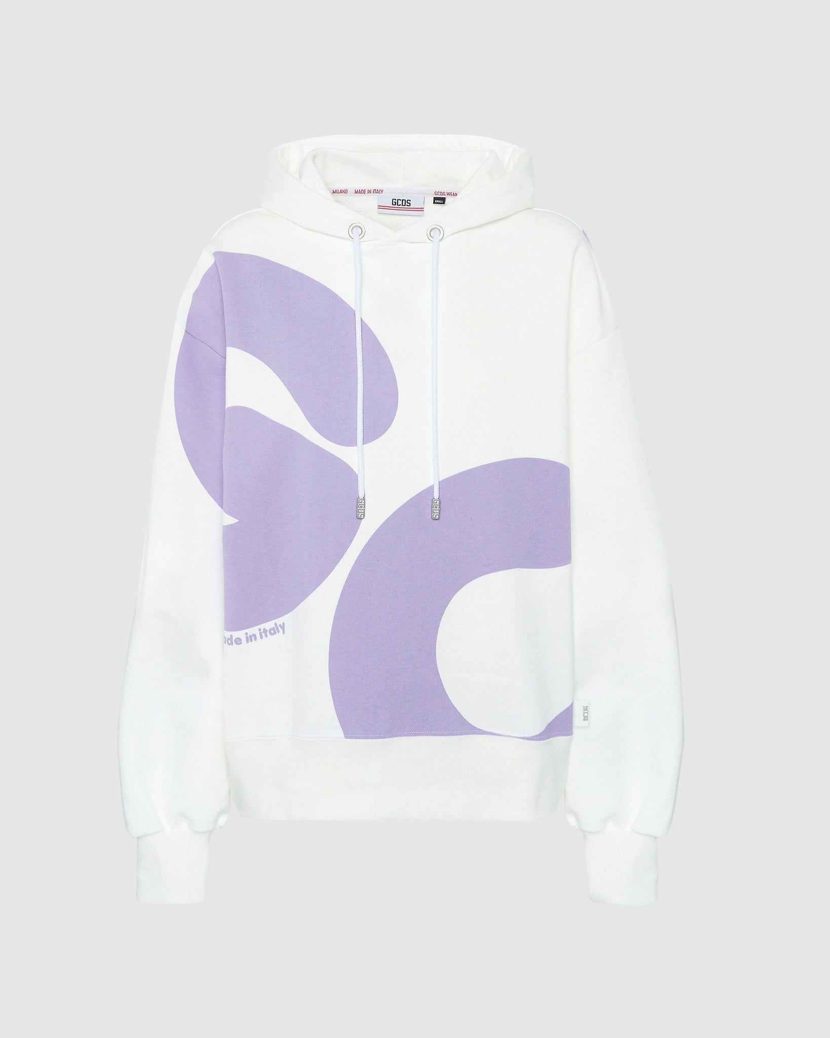 Long-sleeved GCDS sweatshirt with adjustable hood. Maxi Andy logo print on the front and back. Made in Italy print on the front. Over-sized.