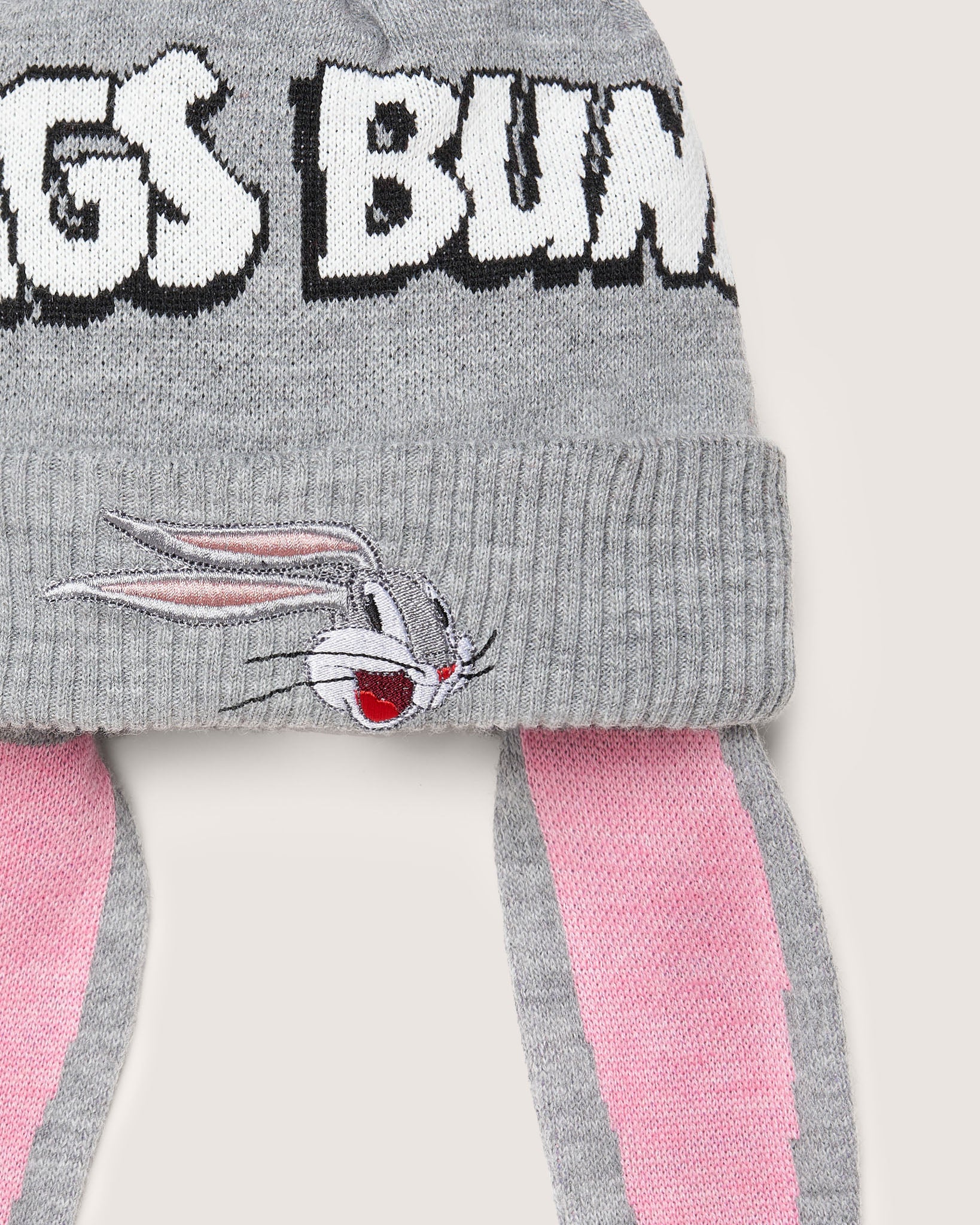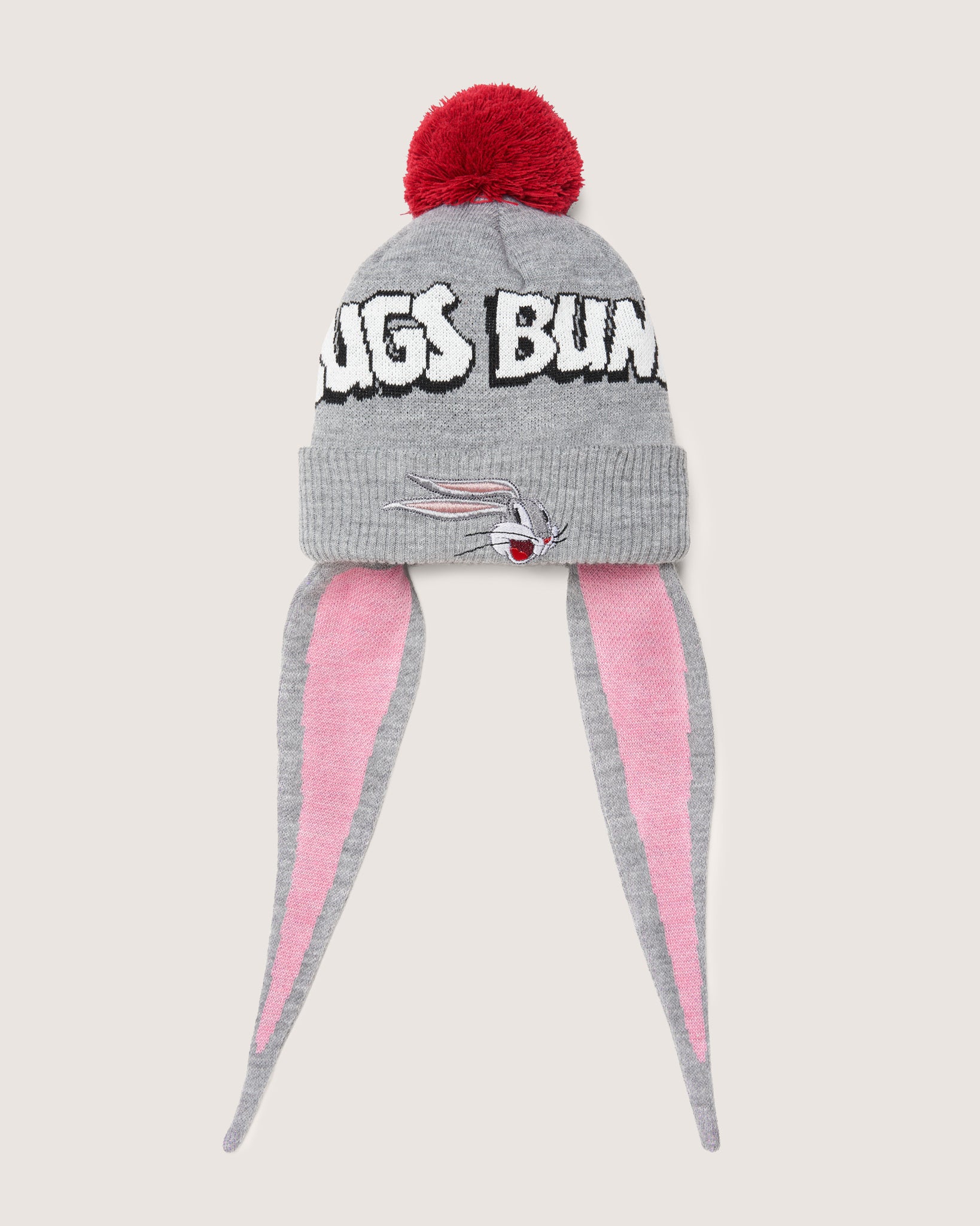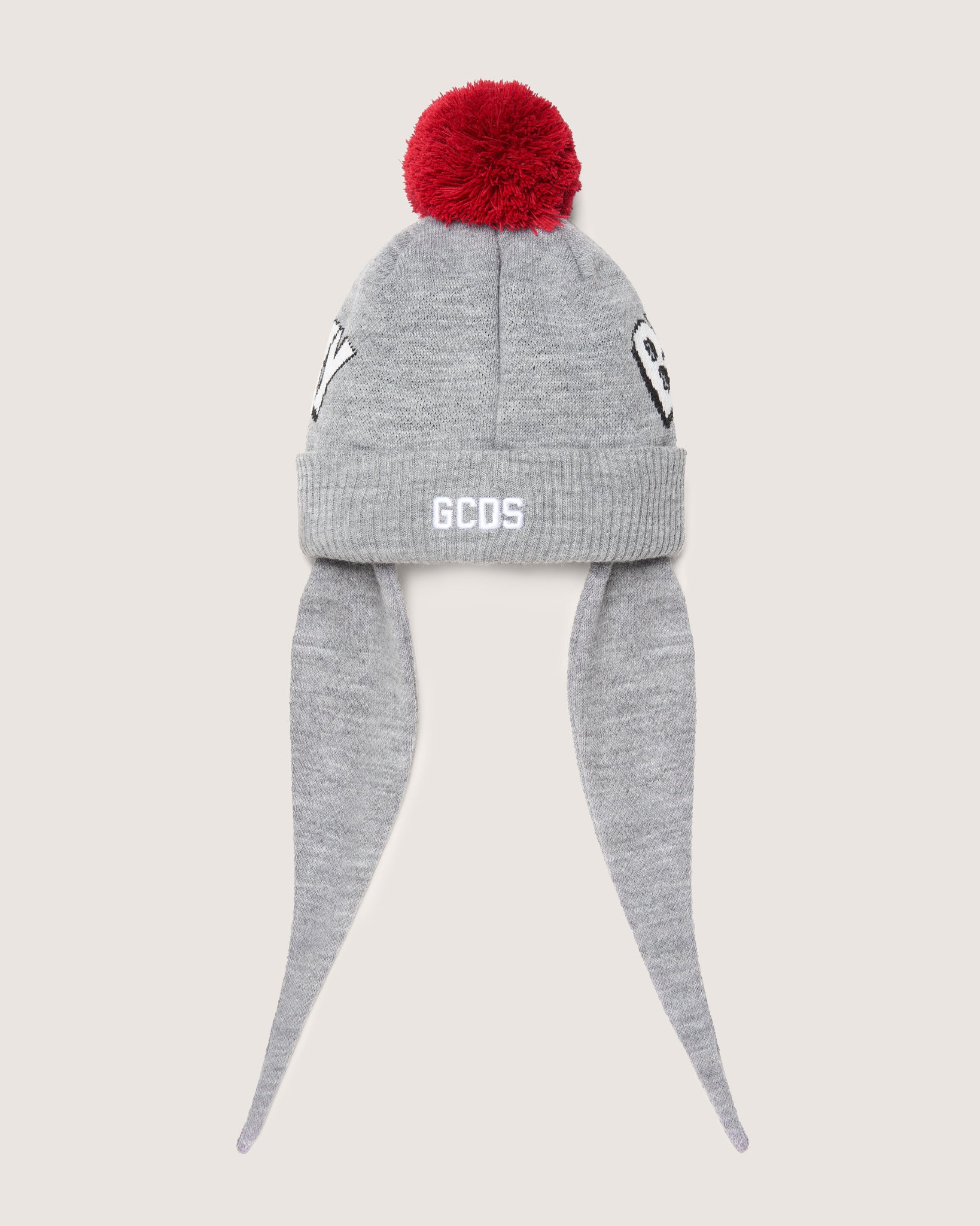 GCDS beanie with embroidered and Jacquard Looney Tunes details, this season's collection. Wool pompom. Maxi ears double as warm earmuffs.