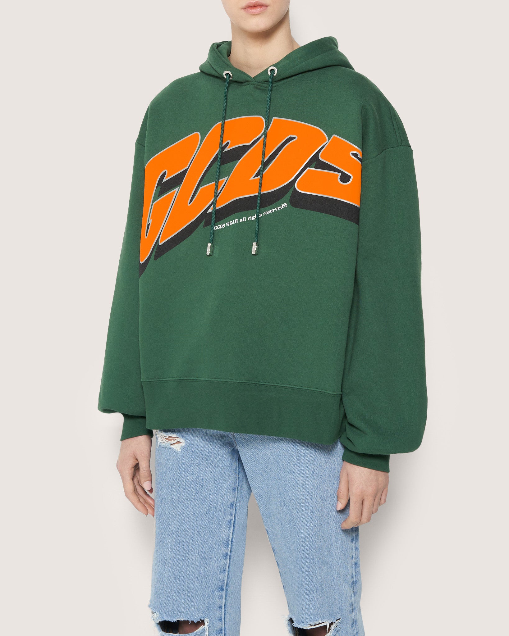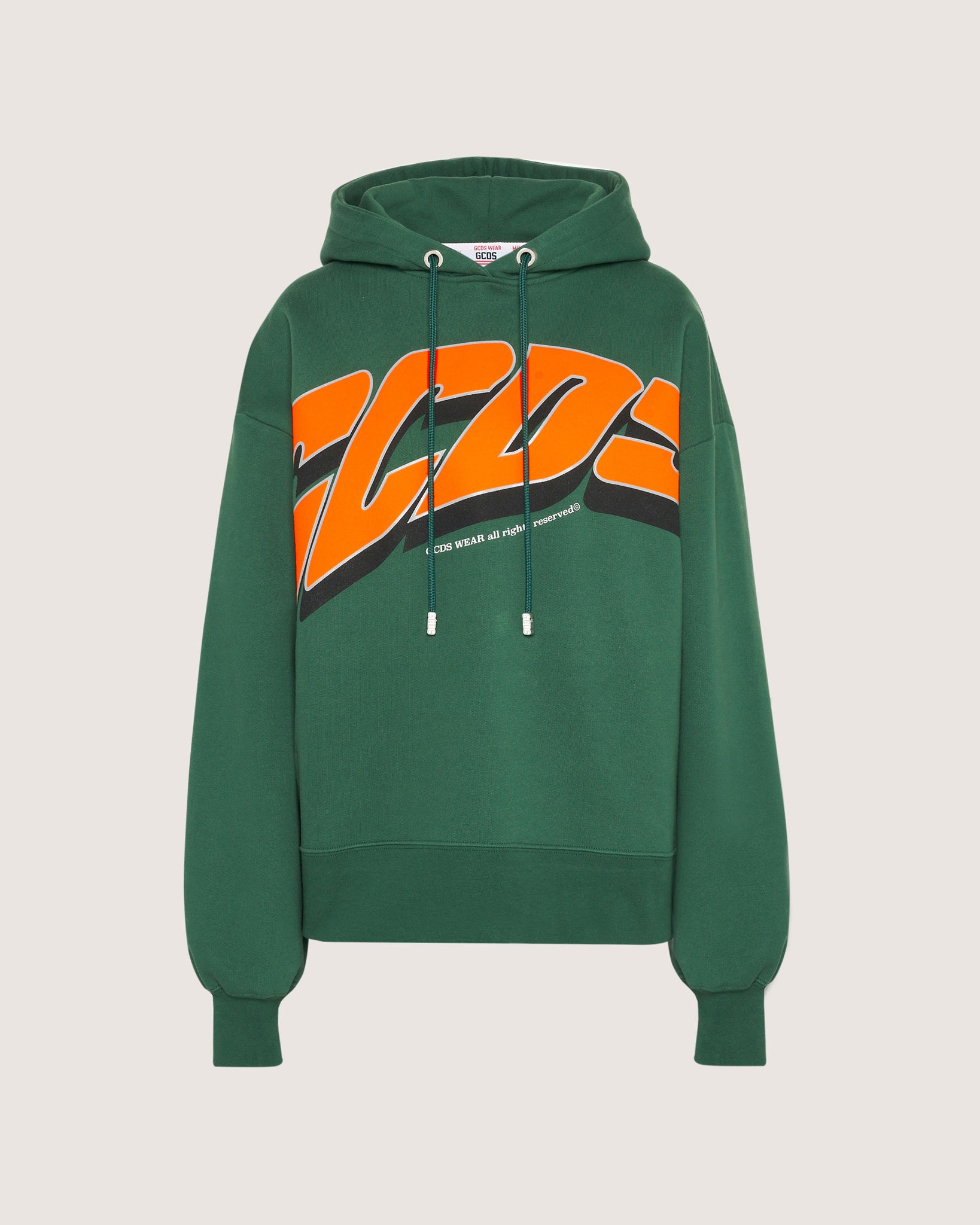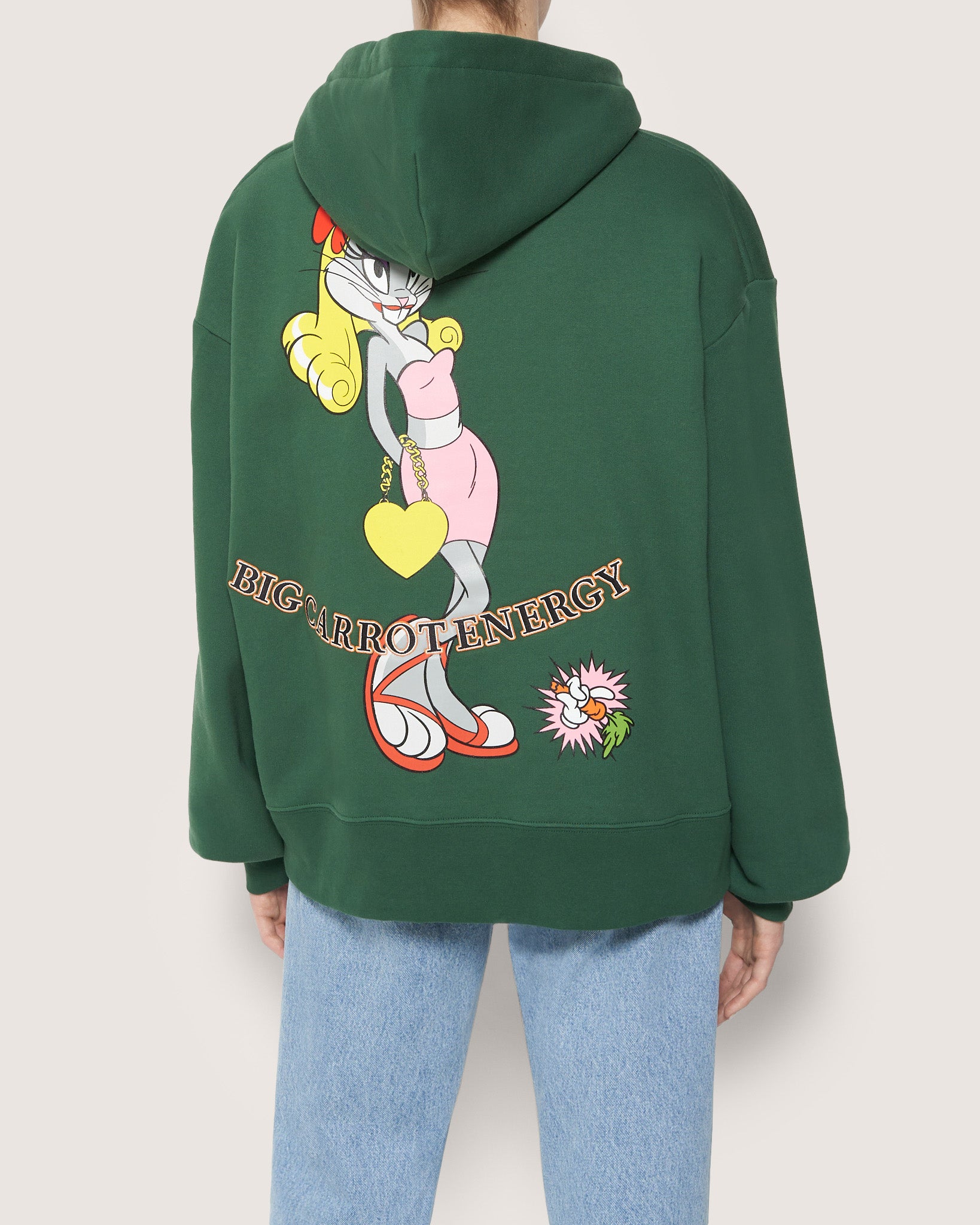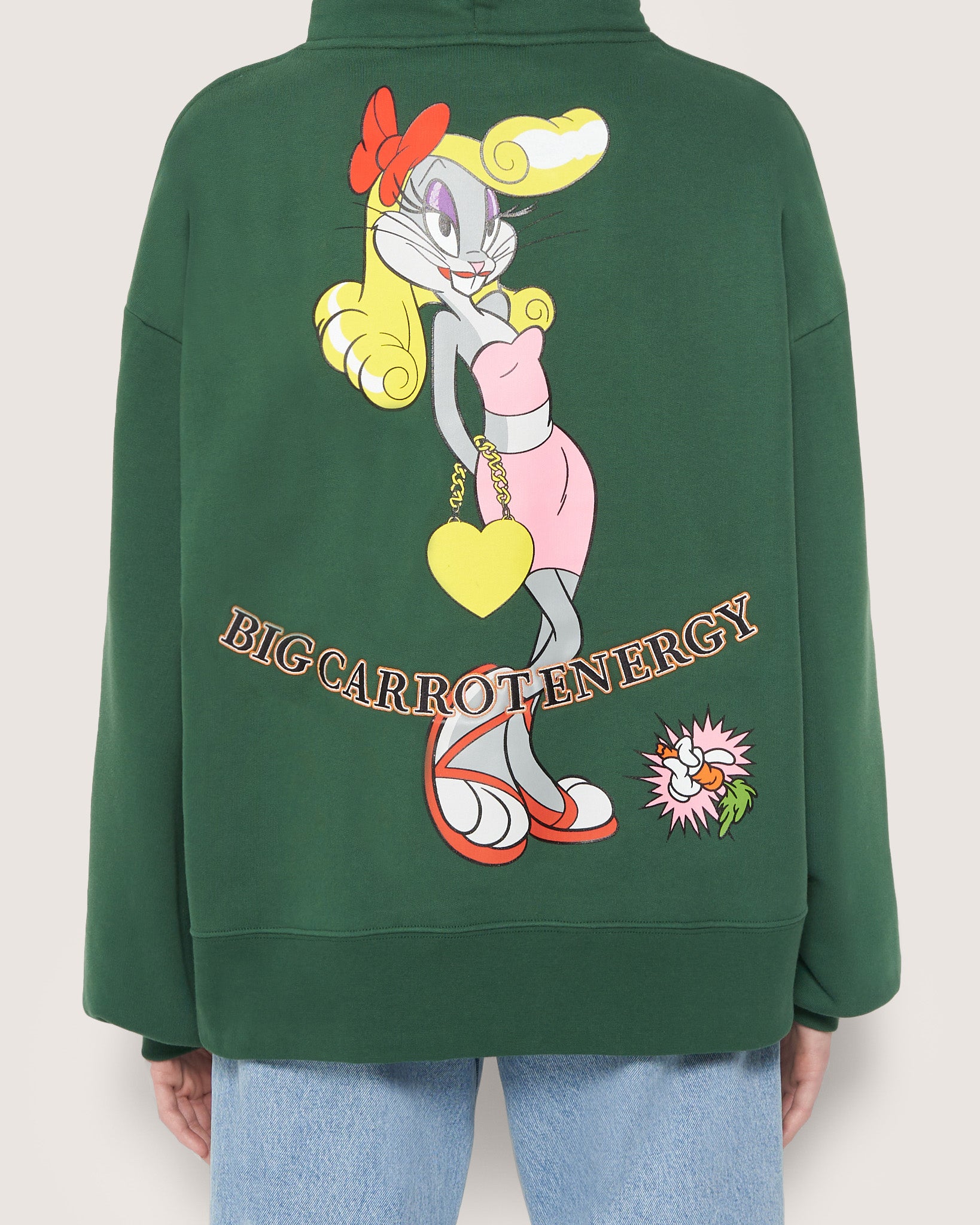 Long sleeves GCDS sweatshirt, adjustable hood with drawstring and cord clamp. On the front, 3D printed GCDS logo. On the back, silkscreen print and embroidery from the seasonal Looney Tunes collection. Over-sized.